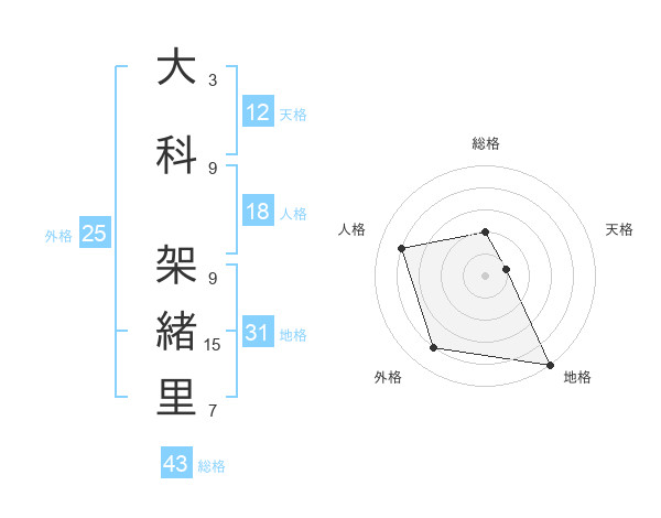 大科 架緒里さんの天格は12画の1点!