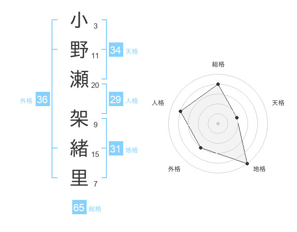 小野瀬 架緒里さんを姓名の画数から五運を鑑定