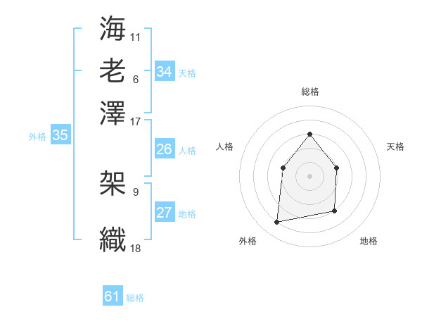 海老澤 架織さんの総格は61画の3点!