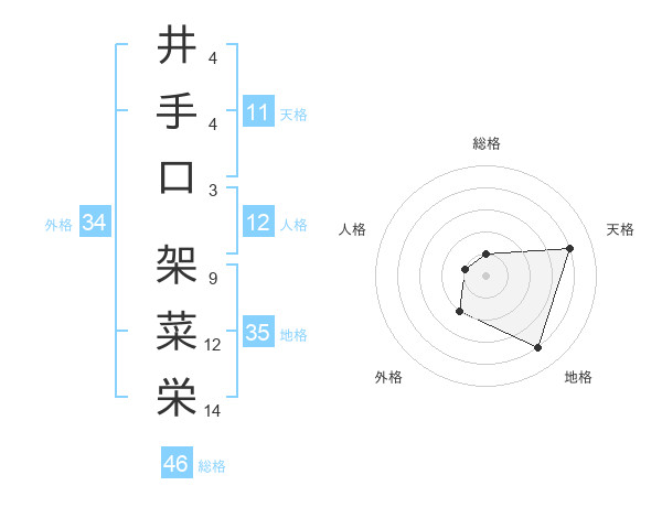 井手口 架菜栄さんの外格は34画の2点!