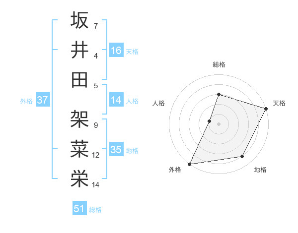 坂井田 架菜栄さんを姓名の画数から五運を鑑定