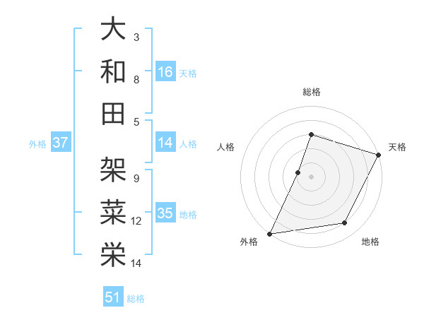 大和田 架菜栄さんを姓名の画数から五運を鑑定