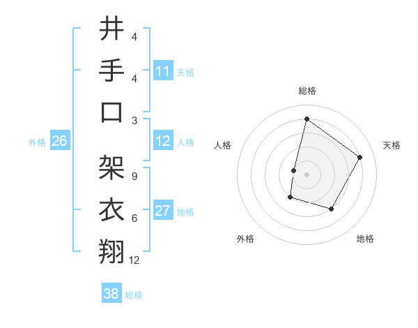 井手口 架衣翔さんを姓名の画数から五運を鑑定