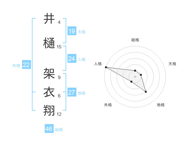 井樋 架衣翔さんを姓名の画数から五運を鑑定