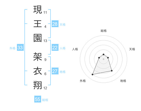 現王園 架衣翔さんを姓名の画数から五運を鑑定