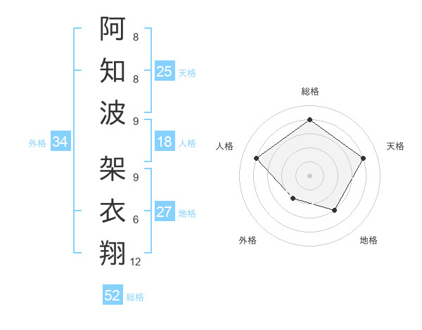 阿知波 架衣翔さんの総格は52画の4点!