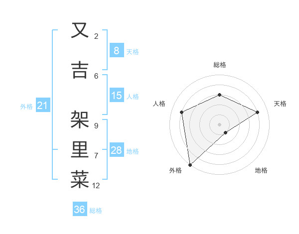 又吉 架里菜さんの天格は8画の4点!