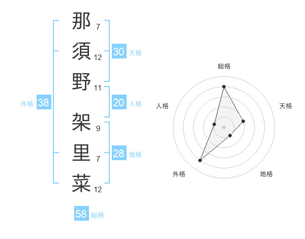 那須野 架里菜さんを姓名の画数から五運を鑑定