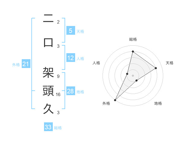 二口 架頭久さんの総格は33画の4点!