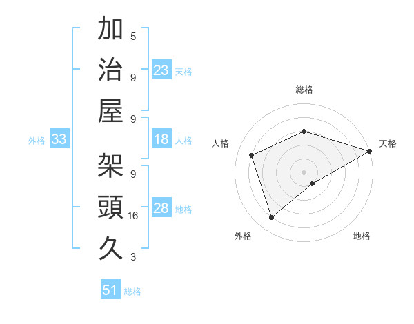 加治屋 架頭久さんを姓名の画数から五運を鑑定