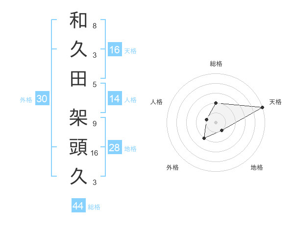 和久田 架頭久さんを姓名の画数から五運を鑑定