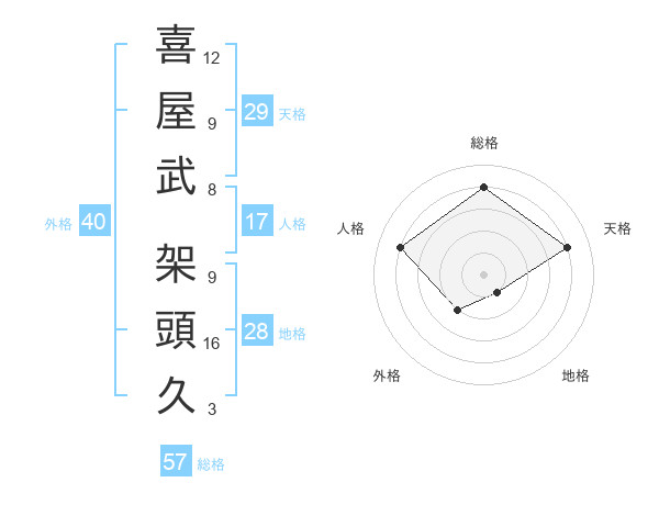 喜屋武 架頭久さんを姓名の画数から五運を鑑定