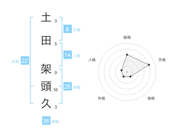 土田 架頭久さんを姓名の画数から五運を鑑定