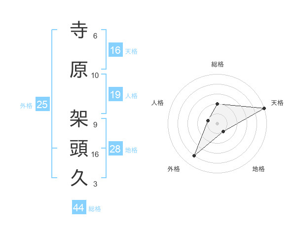 寺原 架頭久さんを姓名の画数から五運を鑑定