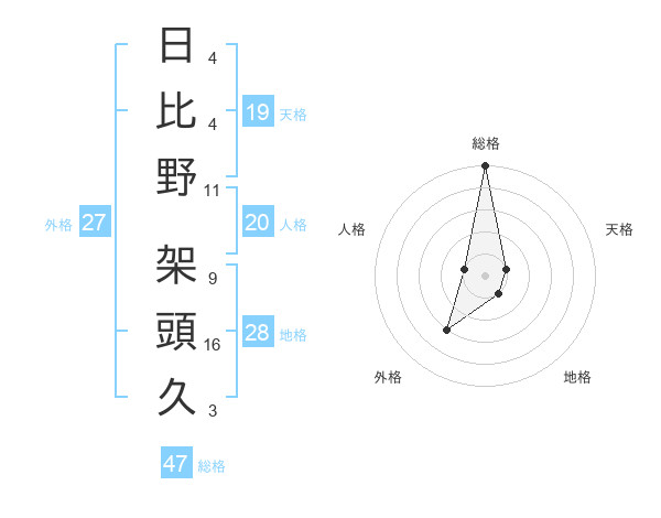 日比野 架頭久さんの総格は47画の5点!