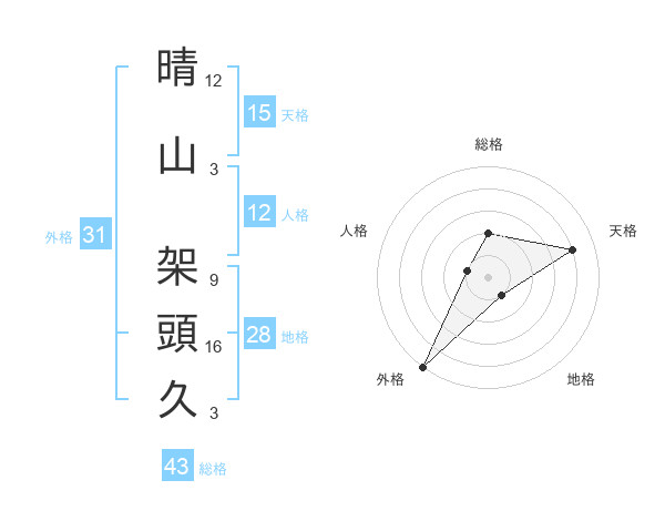 晴山 架頭久さんを姓名の画数から五運を鑑定