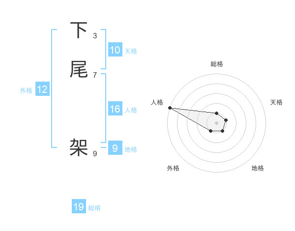 下尾 架さんの総格は19画の1点!