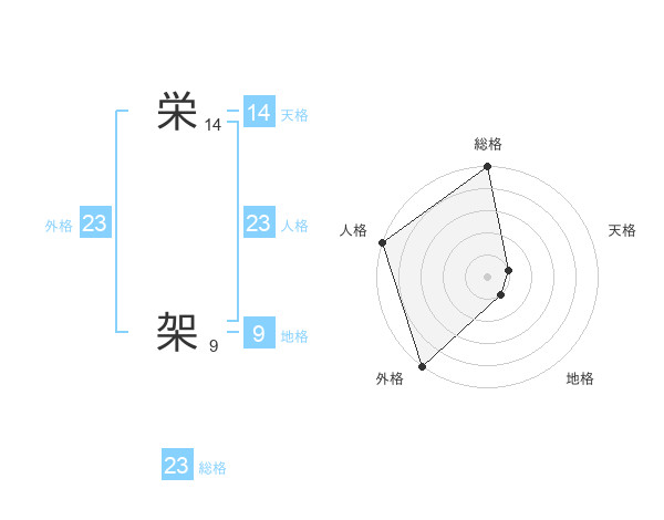 栄 架さんの外格は23画の5点!
