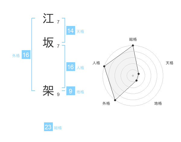 江坂 架さんの外格は16画の5点!