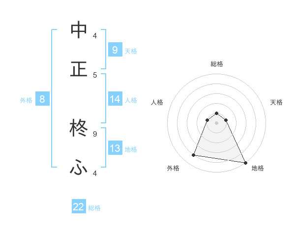 中正 柊ふさんの外格は8画の4点!