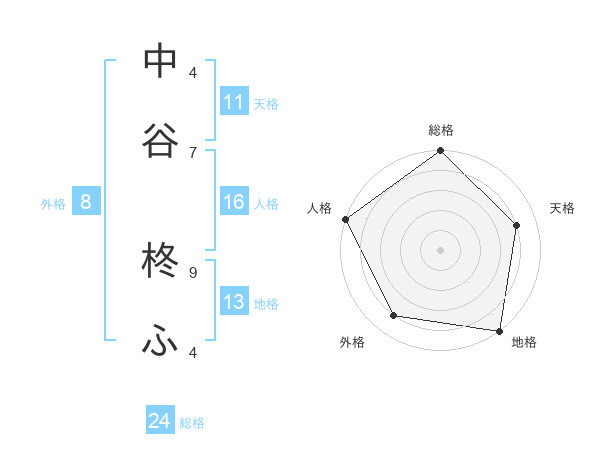 中谷 柊ふさんの地格は13画の5点!