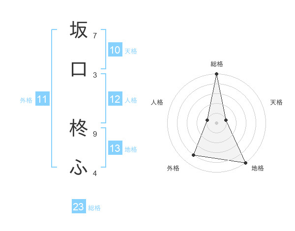 坂口 柊ふさんを姓名の画数から五運を鑑定
