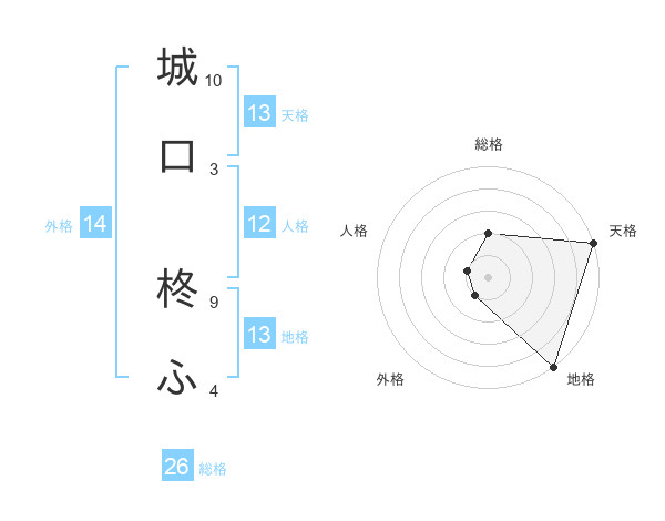 城口 柊ふさんを姓名の画数から五運を鑑定