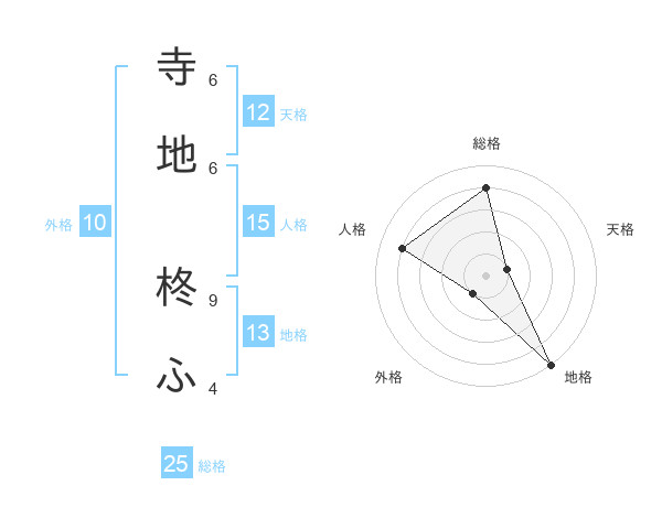 寺地 柊ふさんの天格は12画の1点!
