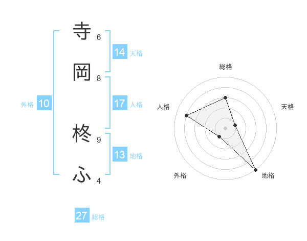 寺岡 柊ふさんの総格は27画の3点!