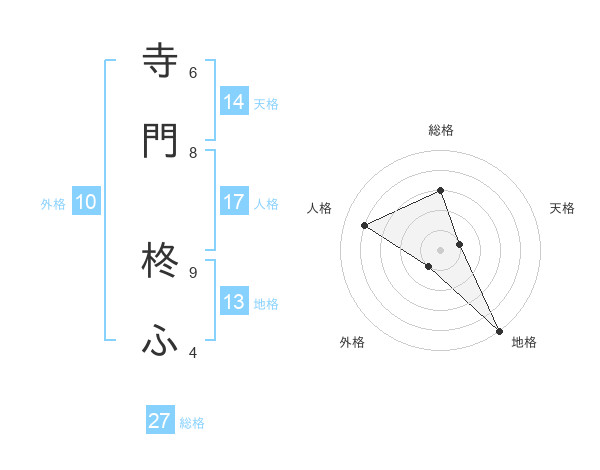 寺門 柊ふさんの総格は27画の3点!