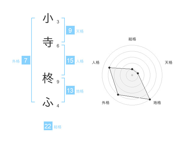小寺 柊ふさんの総格は22画の1点!