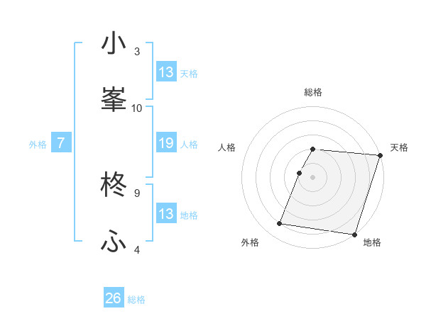 小峯 柊ふさんの天格は13画の5点!