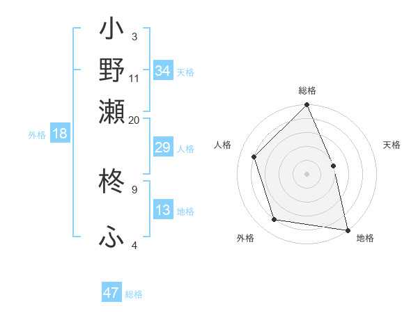 小野瀬 柊ふさんを姓名の画数から五運を鑑定