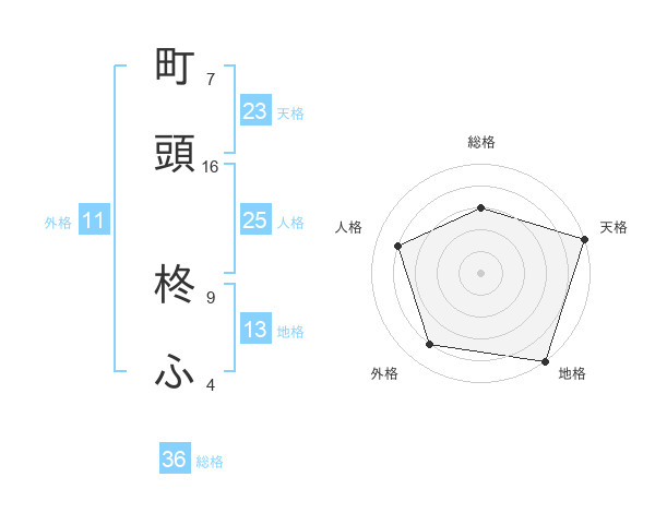 町頭 柊ふさんの天格は23画の5点!