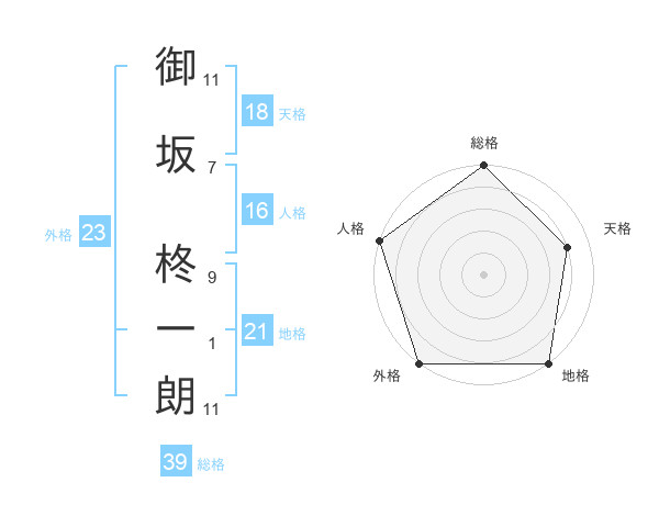 御坂 柊一朗さんを姓名の画数から五運を鑑定