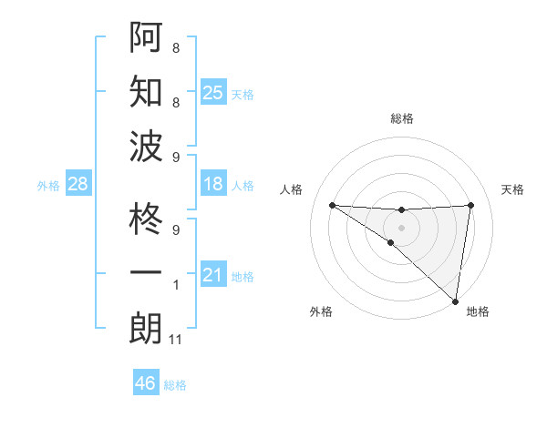 阿知波 柊一朗さんの天格は25画の4点!