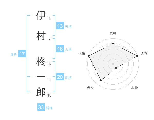 伊村 柊一郎さんを姓名の画数から五運を鑑定