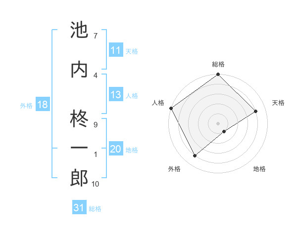 池内 柊一郎さんの総格は31画の5点