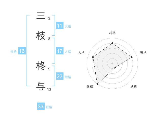 三枝 柊与さんの外格は16画の5点!