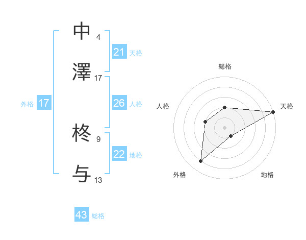 中澤 柊与さんの天格は21画の5点!