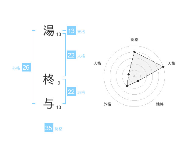湯 柊与さんの天格は13画の5点!