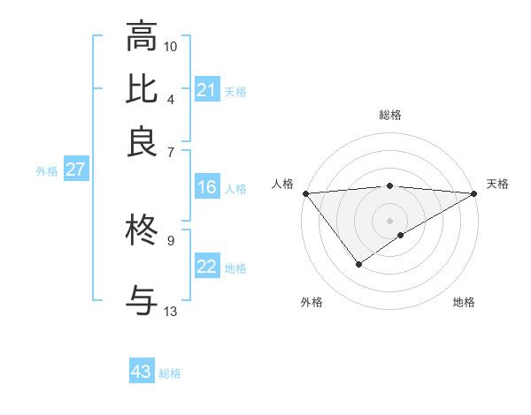 高比良 柊与さんを姓名の画数から五運を鑑定