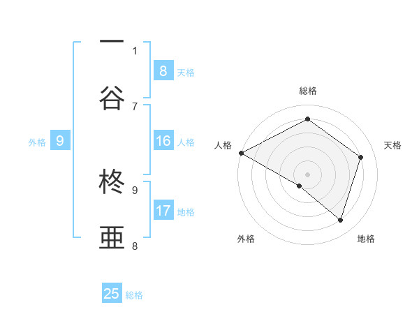 一谷 柊亜さんの総格は25画の4点!