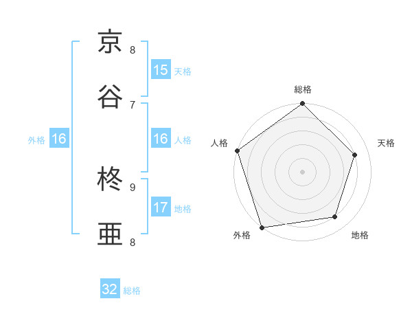 京谷 柊亜さんの総格は32画の5点!