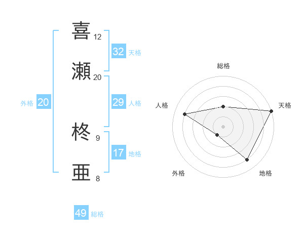 喜瀬 柊亜さんの総格は49画の2点!