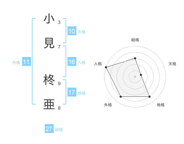 小見 柊亜さんを姓名の画数から五運を鑑定