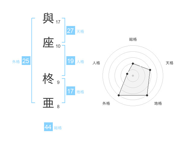 與座 柊亜さんの総格は44画の2点!