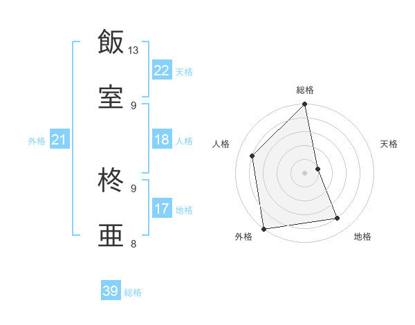 飯室 柊亜さんの総格は39画の5点!
