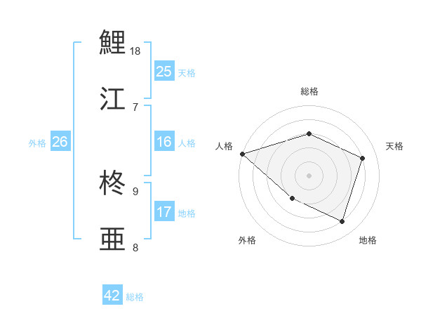 鯉江 柊亜さんを姓名の画数から五運を鑑定