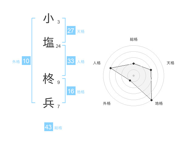 小塩 柊兵さんを姓名の画数から五運を鑑定